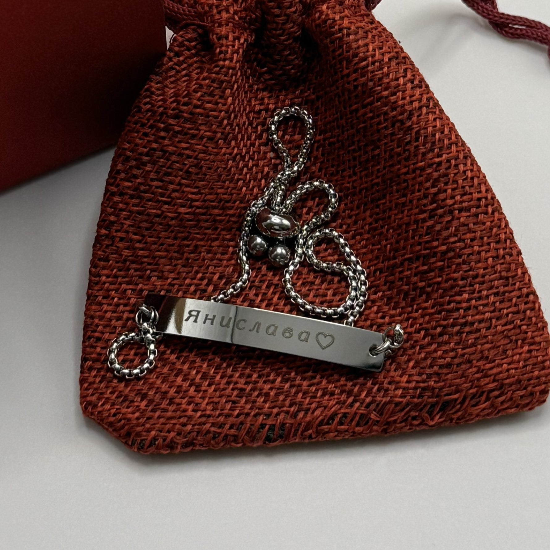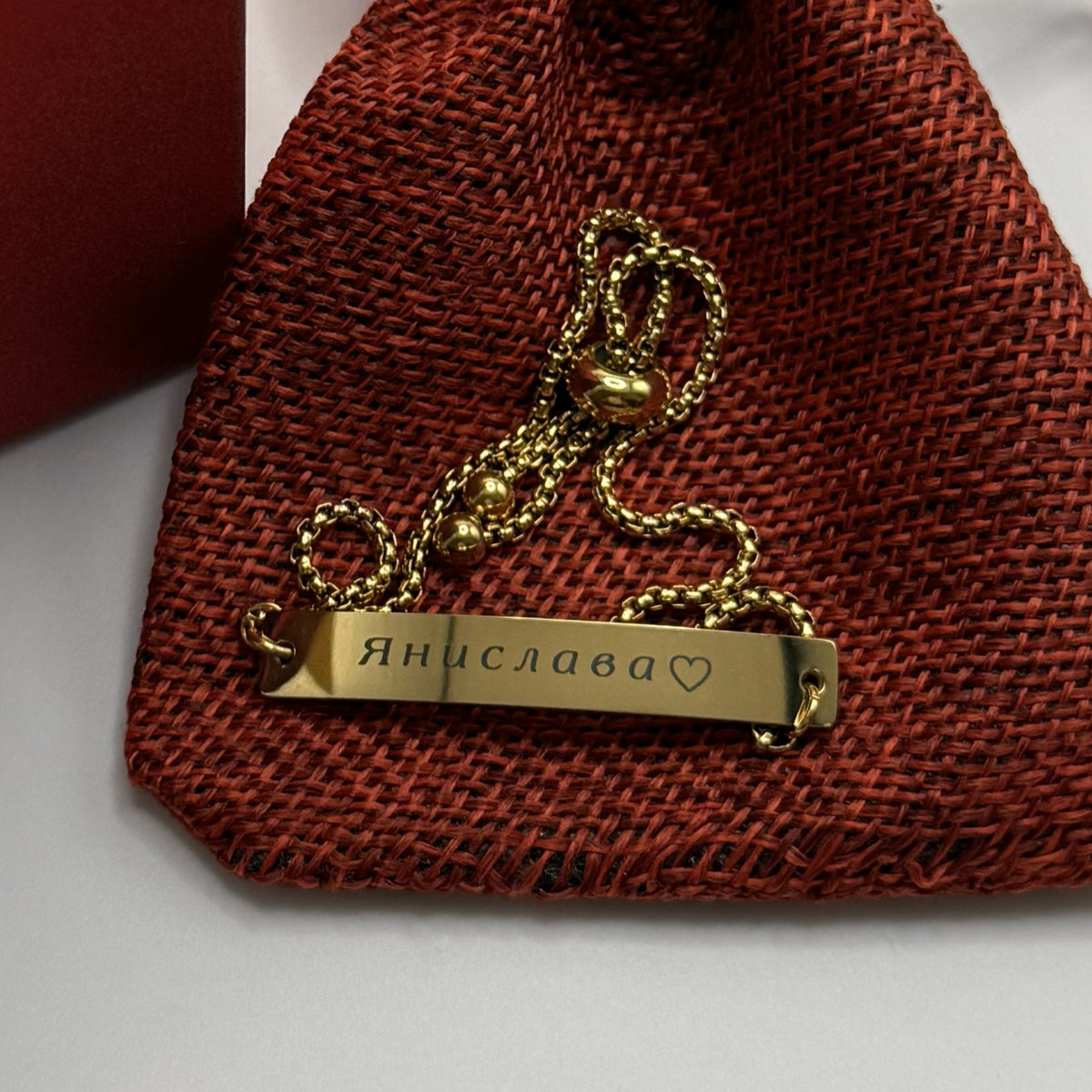 Това е нежна регулируема гривна с фина верижка и метална плочка, върху която се гравира име. Подходяща е за момиче или жена – приятелка, сестра, дъщеря, колежка или любима – когато искате да покажете лично отношение с дискретен, но сантиментален подарък. Подхожда както за ежедневието, така и за по-официални поводи като рожден ден, бал, годишнина или просто „без повод“, за да напомня, че човекът отсреща е специален.