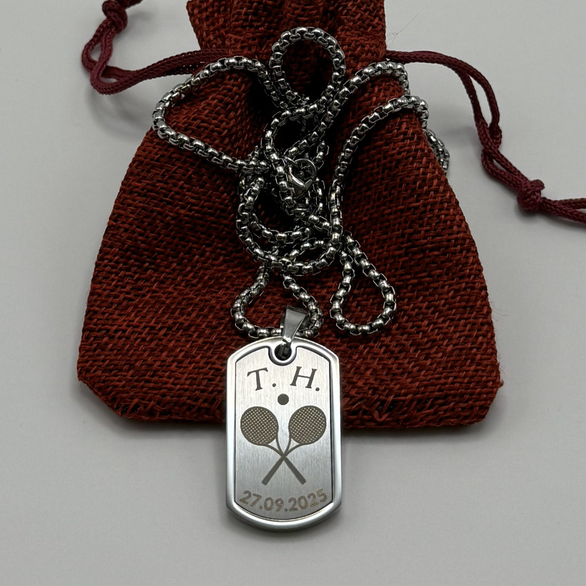 Този уникален персонализиран медальон е създаден за спортисти и фенове на различни спортове – футбол, тенис, баскетбол, бокс, лека атлетика, борба, волейбол и други. Заедно с индивидуалните инициали и специална дата, клиентите могат да избират спортен символ, който най-добре отразява тяхната страст и постижения. Изработен от здрав материал с модерен дизайн, този медальон е перфектен спомен и мотивация за всеки спортен ентусиаст.
